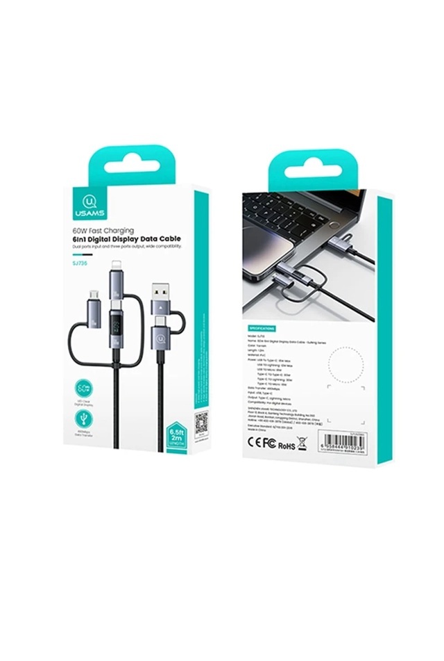 کابل شارژ چند سر نمایشگردار 60 وات یوسمز مدل sj736 6in1